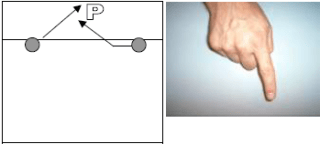 Primo/secondo tempo avanti il palleggiatore. Palla alta circa 0,5/0,6 mt., staccata 50/60 cm. da rete.